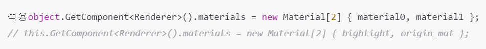 다음 같이 materials length를 늘려주고 materials[0]에 다른 material을 추가해야하는 일이 생겼다.