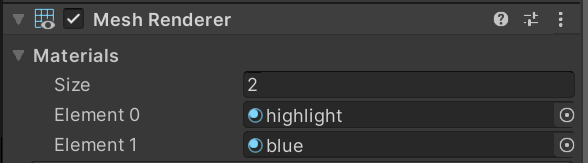 위 사진 같이 Mesh Renderer의 Materials에 요소가 1개밖에 없는걸
