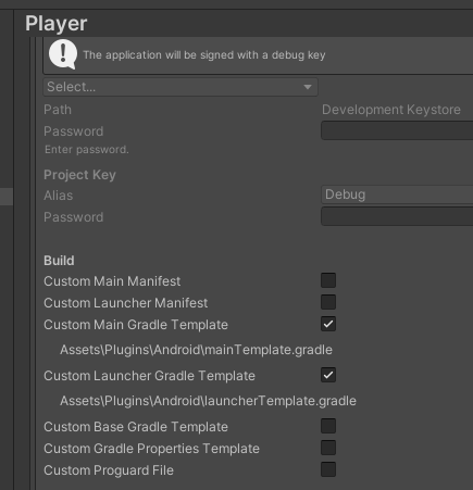 1) Player Settings -> Publish Settings -> Build의 다음 두가지 체크