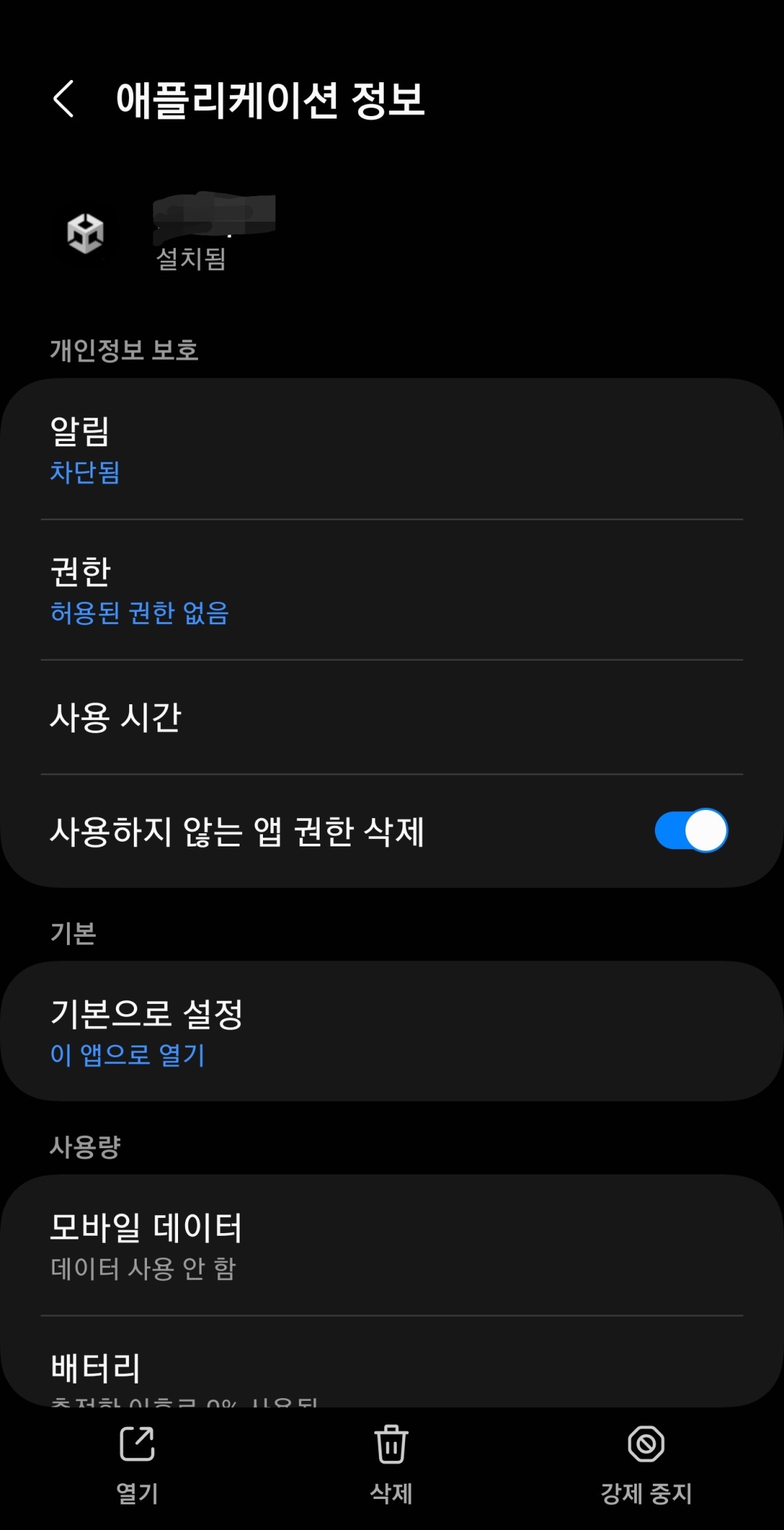 다음 이미지 같이 앱 설정창으로 이동하는 것을 볼 수 있다.