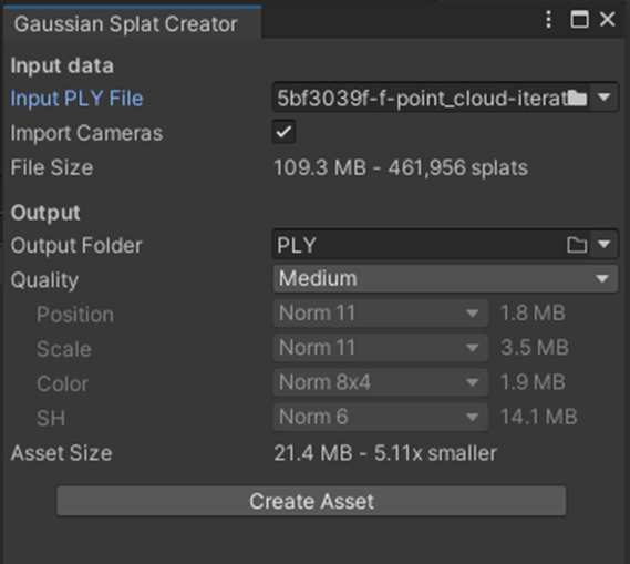 7. Gaussian Splat Renderer 컴포넌트의 Data Asset > Asset에 아까 만든 .asset파일 넣기