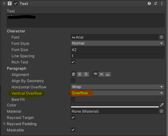 해결) Text의 Vertical Overflow속성을 Truncate에서 Overflow로 바꿔준다.
