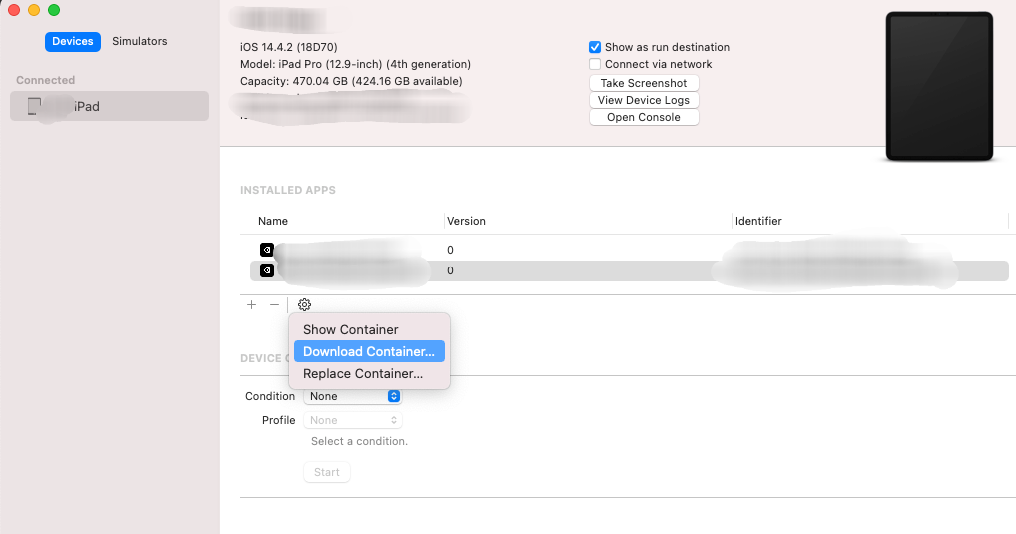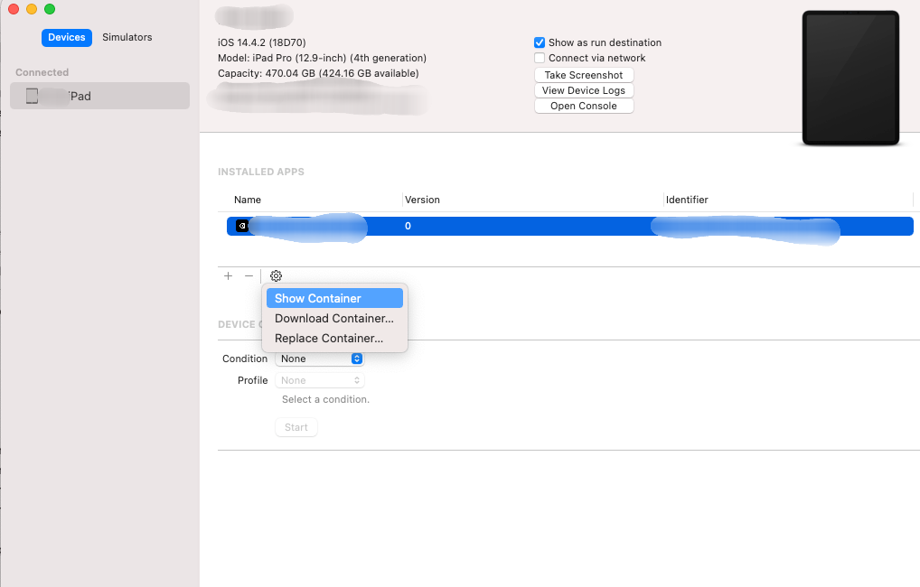 3. 내 Device 선택 -> INSTALLED APPS에서 해당 app 선택